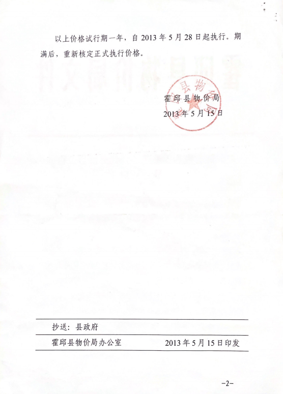 霍邱縣物價(jià)局 價(jià)業(yè)【2013】20號(hào) 文件