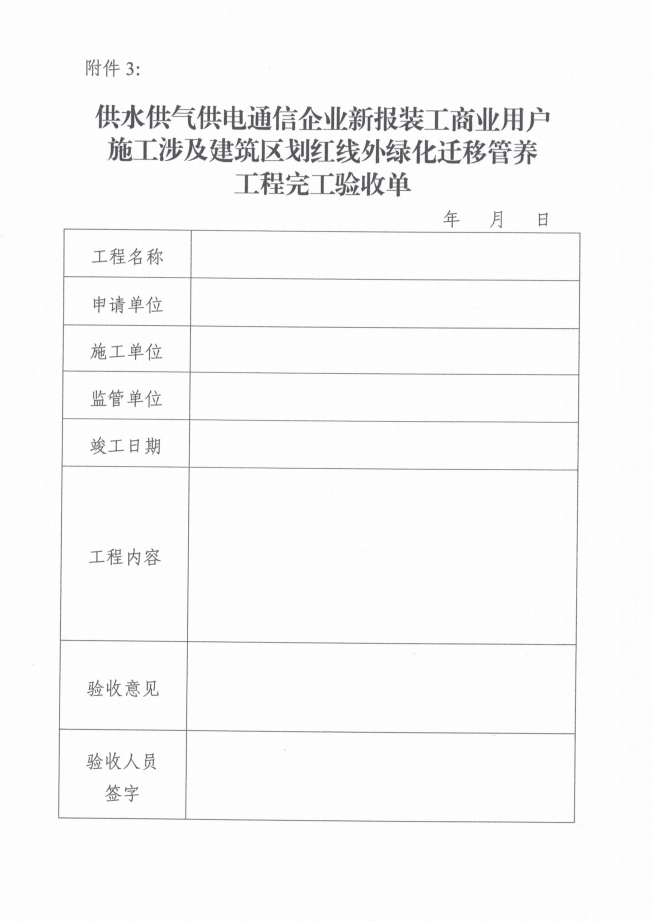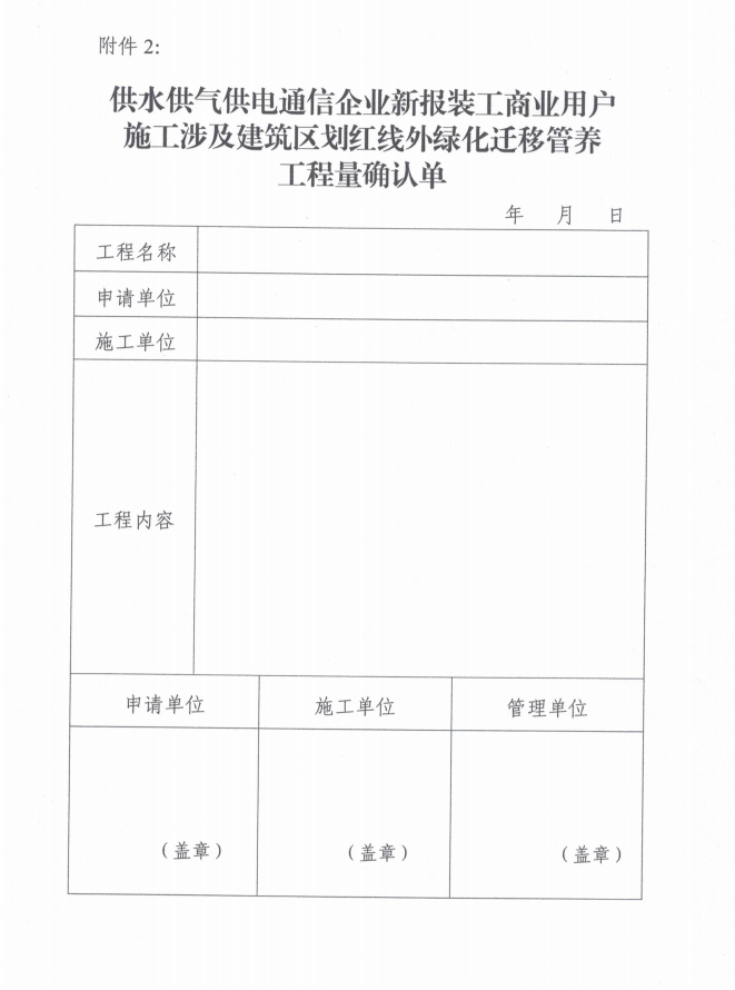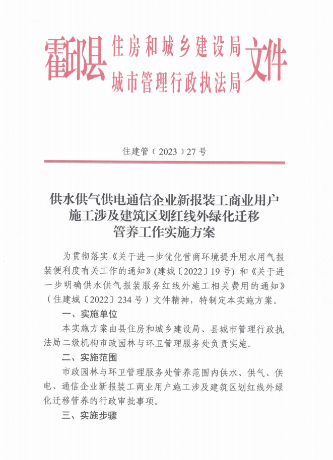 供水供氣供電通信企業(yè)新報裝工商業(yè)用戶施工涉及建筑區(qū)劃紅線外綠化遷移管養(yǎng)工作實施方案